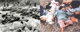 In 1981 Begin appointed Sharon Minister of Defense, and a year later Israel invaded Lebanon, providing the opportunity for Sharon to become an actual war criminal. On 15 September 1982 in response to the assassination of Lebanese president and Israeli ally Bashir Gemayel Sharon, Begin, chief of staff Rafael Eitan and foreign Minister Yitzhak Shamir decided to reoccupy West Beirut, violating their agreement with the United States. The Israeli army surrounded the Sabra neighborhood and Shatila refugee camp, where thousands of Palestinians, mostly women, children and old men, lived, and the following day Sharon and Eitan invited the Christian Phalange militias (See Ironies from Israel #2) to “mop up” the refugee camps, providing Israeli jeeps to transport them. The Phalange, originally modeled on the Nazi SA, entered the camps and began raping, mutilating and butchering the inhabitants, all of this being observed by Israeli officers stationed in buildings around the area. When darkness fell, the Israeli army continuously fired flares, illuminating the camps. The following morning the army ordered the Phalange to stop. By that time more than a thousand Palestinians, including small children, had been killed.