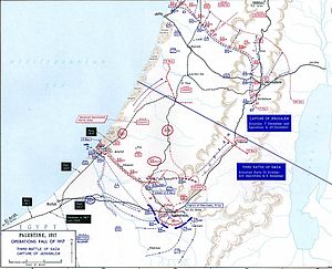 Meanwhile, in Palestine the Third Battle of Gaza was rolling on. The capture of Beersheba and the eastern sector of the Turkish line made their position in Gaza ultimately untenable, and during the night of 6/7 November the Turks slipped out of the city. The Egyptian Expeditionary Force pursued, withstood a Turkish counterattack on 12 November and on the 13th and 14th attacked and defeated the Turkish rearguards, leading the Ottoman commander, Erich von Falkenhayn, to order a withdrawal all along the line. His Seventh Army took up positions in the Judean Hills, preparing to defend Jerusalem, and his Eighth Army retreated up the coast to just beyond Jaffa, which was entered by EEF units on 16 November.