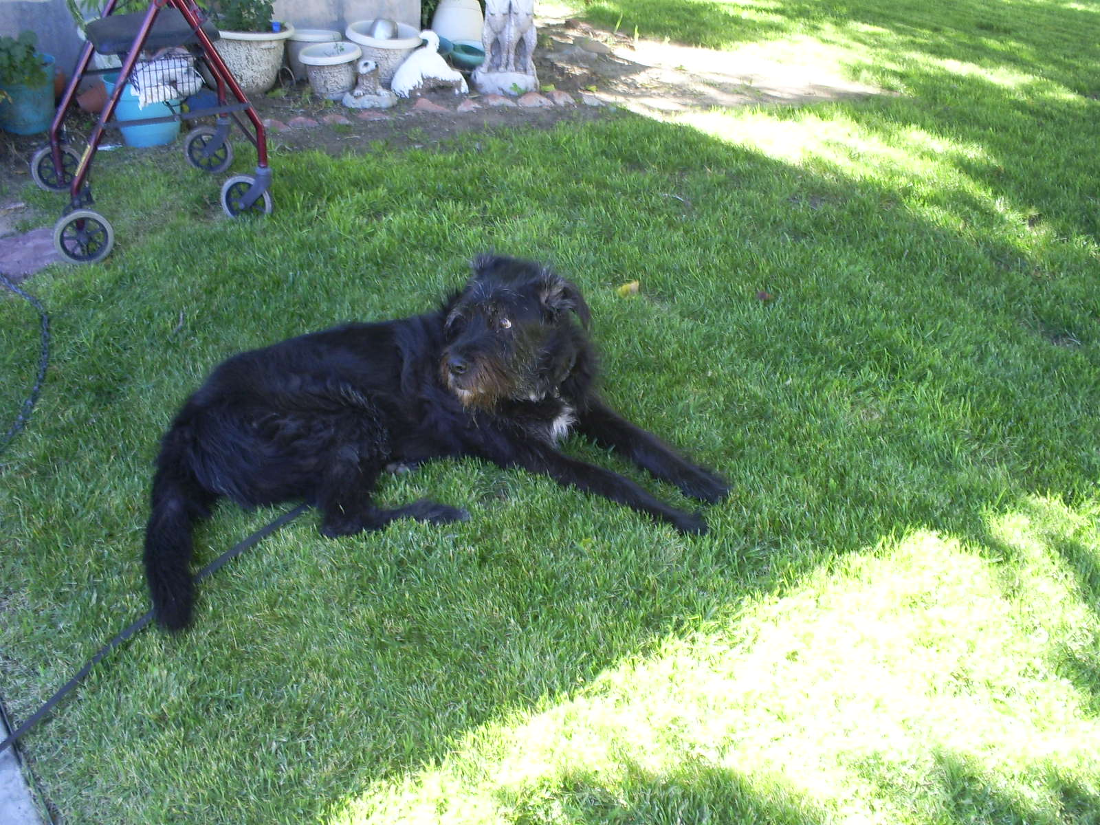 Alfred the dog, our companion for twelve years, reached the end of the line yesterday. He was a mix of terrier, bouvier and god knows what else, rescued from a shelter as a pup. He was having increasing difficulty using his hind legs to get up and did not seem to be enjoying life anymore, so we allowed him to leave us gently, falling into a sleep from which he would never wake. Fortunately, he did not have to suffer, as we compel humans to do. His ashes will be placed by a tree planted for him. (This is not at all easy to write this.)