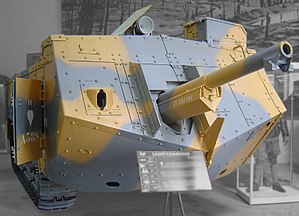 France’s third tank was by far the most successful. Renault, accustomed to mass production of cars, came up with a design for a light tank, the 7 ton Renault FT, which entered service in late 1917. This was in effect the first modern tank: the power plant was at the rear, and a fully rotating turret on top housed the armament, either a 37 mm gun or several machine guns. The design was very successful, and 3700 were produced – more than any other tank in the war – many finding employment in various countries until well after the Second World War.